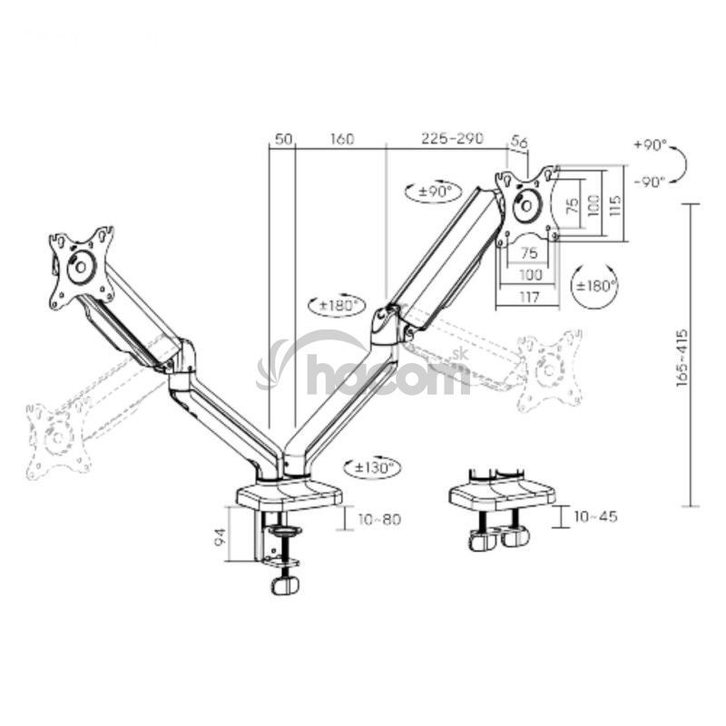 • Vstavaný pružinový mechanizmus umožňujúci dokonalé tuhosti ramien podľa hmotnosti monitorov zaisťuje ľahký pohyb hore a dole.