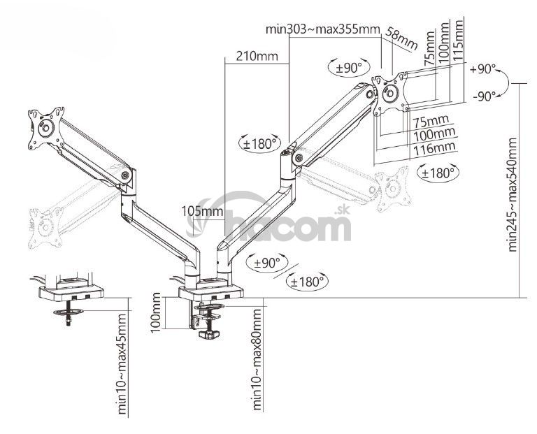 - Držiak monitora Brateck LDT60-C024 dve ramená vedľa seba mechanická pružina Heavy Duty BRLDT60C024