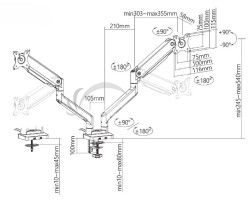 • Vstavaný pružinový mechanizmus umožňujúci dokonalé nastavenie tuhosti ramien podľa hmotnosti monitora zaisťuje ľahký pohyb hore a dole.