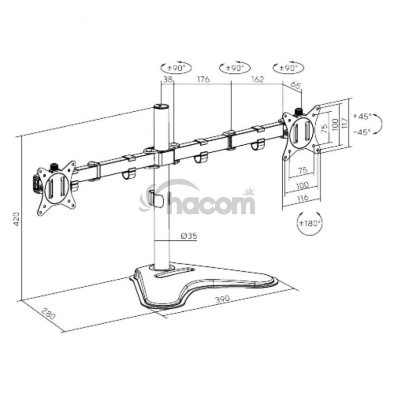 • Jemné nastavenie výšky VESA dosiek umožňuje precízne zarovnanie výšky oboch monitorov pre bezproblémový zážitok z prezerania vedľa seba.