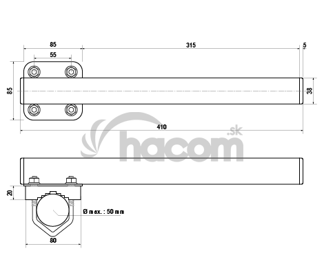 • Držiak je navrhnutý pre montáž na stožiar alebo na rúrku.