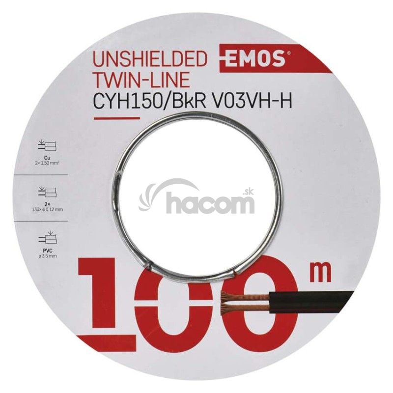 - Dvojlinka netienená 2×1,5mm černo-rudá, 100m 100m S8290