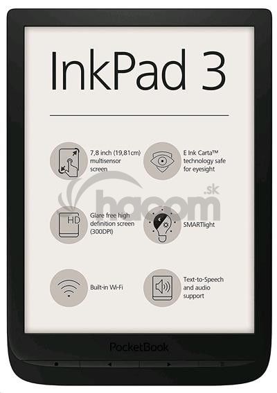 PocketBook inkpad 3 je menší, ľahší a má vyššie rozlíšenie displejaLugano, 8.2.2018 - PocketBook predstavuje novú väčšiu 7,8 palcovou čítačku e-kníh inkpad 3 s displejom E Ink Carta ™ a pokročilou funkciou Smartlight. Oproti predchádzajúcim verziám je čítačka menšie a mimoriadne ľahká, váži len 210 g.