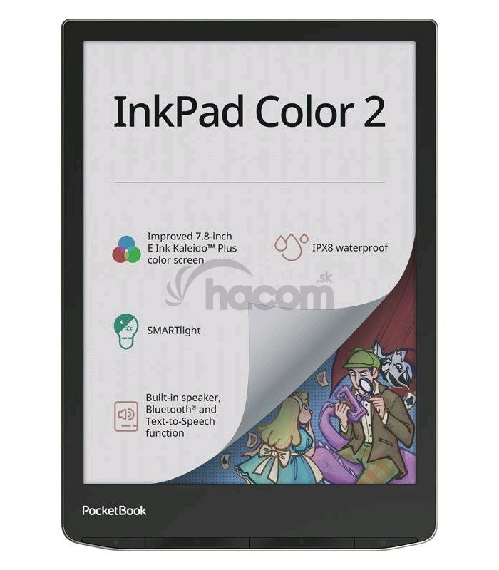 Vylepšený 7,8" farebný displej E Ink a vstavaný reproduktorŠvajčiarska značka PocketBook predstavuje ďalší model zo svojho radu farebných čítačiek elektronických kníh E Ink – PocketBook InkPad Color 2 s vylepšeným displejom E Ink Kaleido™ Plus. Čítačka je vybavená najmodernejšími funkciami, ktoré zaistia jedinečný zážitok z čítania: vstavaný reproduktor, Bluetooth®, funkcia prevodu textu na reč, adaptívnu funkciu SMARTlight a vodotesnosť IPX8.