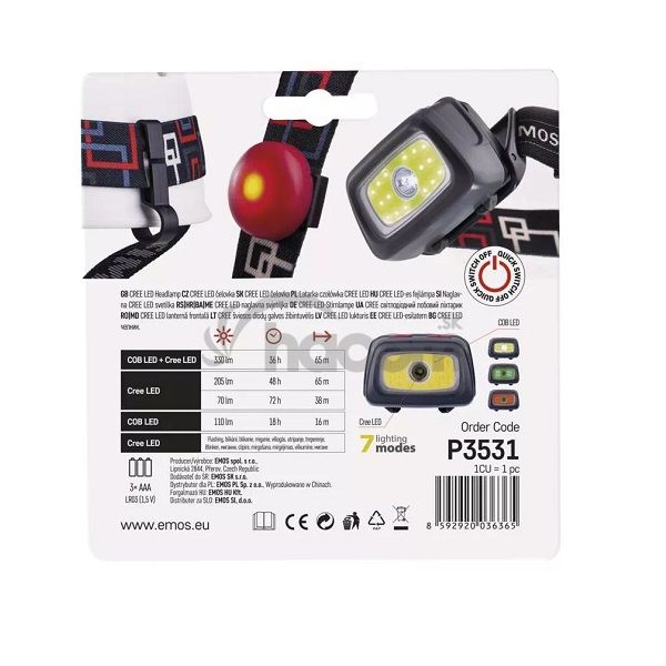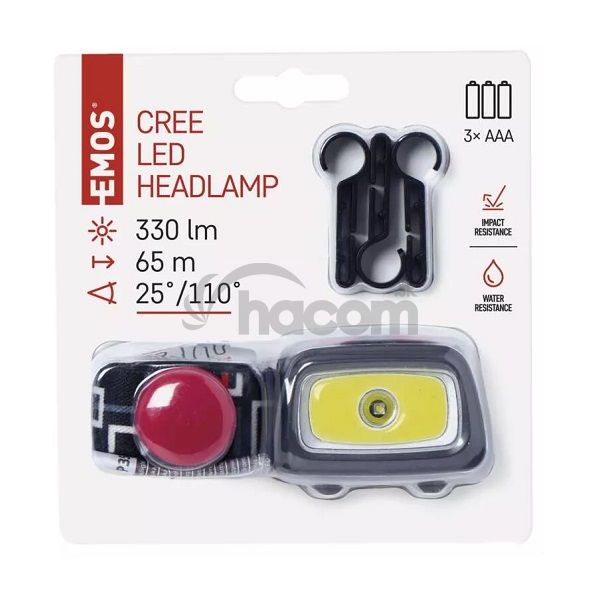 - EMOS CREE LED + COB LED čelovka , 330 lm, 65m, 3× AAA P3531