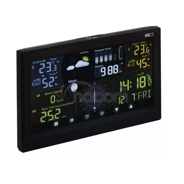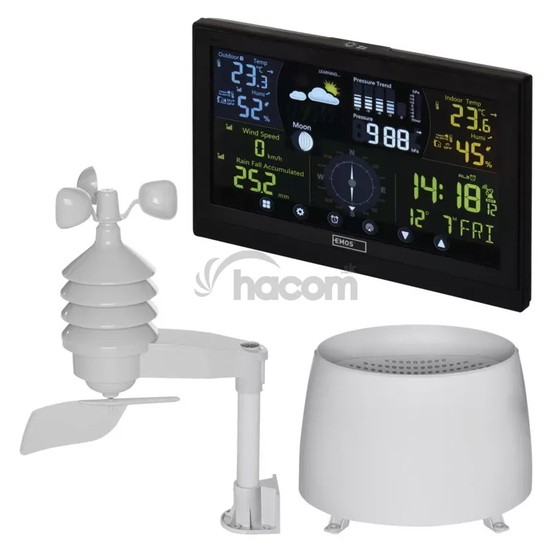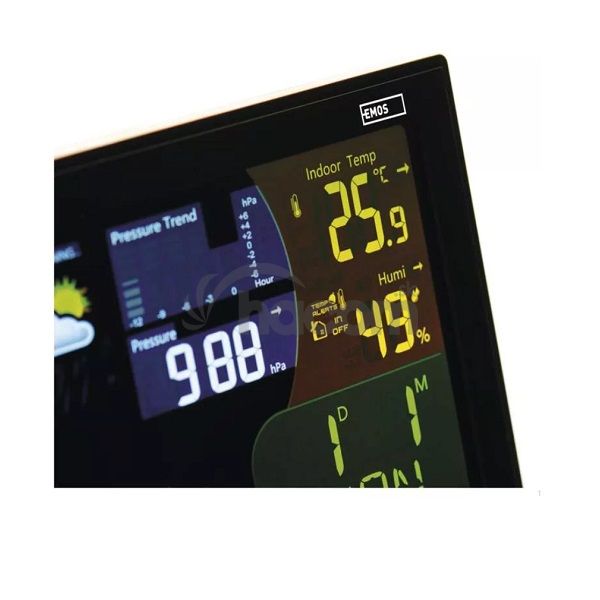 Profi meteostanica EMOS však nezobrazuje len aktuálne počasie, jej veľkou prednosťou je predpoveď počasia v rámci niekoľkých nasledujúcich hodín, aj to, že zaznamenáva dôležité údaje, ku ktorým patrí napríklad maximálna alebo minimálna teplota. Meteostanici nechýba ani ukazovateľ trendu vývoja teplôt a relatívnej vlhkosti a ďalším benefitom je funkcia teplotnej výstrahy, vďaka ktorej budete vopred pripravení na nepriazeň počasia. A to stále nie je všetko, neoddeliteľnou súčasťou meteostanice je aj barometer, vďaka ktorému budete mať prehľad o atmosférickom tlaku.
