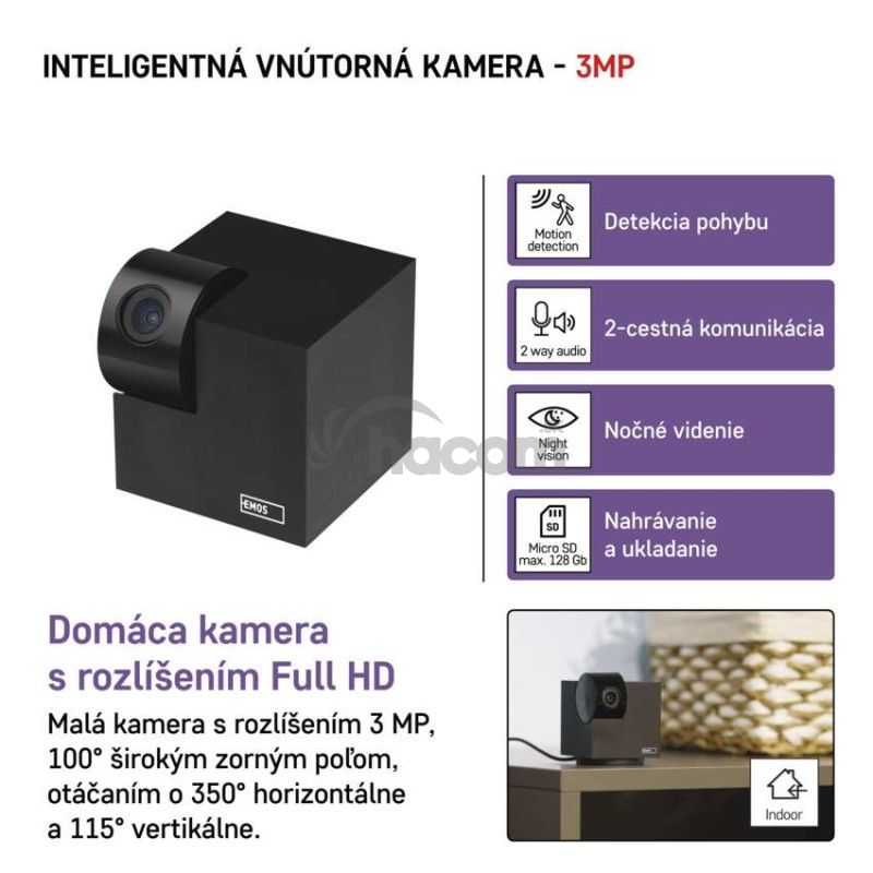 | obsah balenia | 1× kamera, 1× napájací adaptér, 1× kábel USB, 1× držiak, 1× lepiaca páska, 1× skrutky, 1× ochranná páska, 1× príručka |