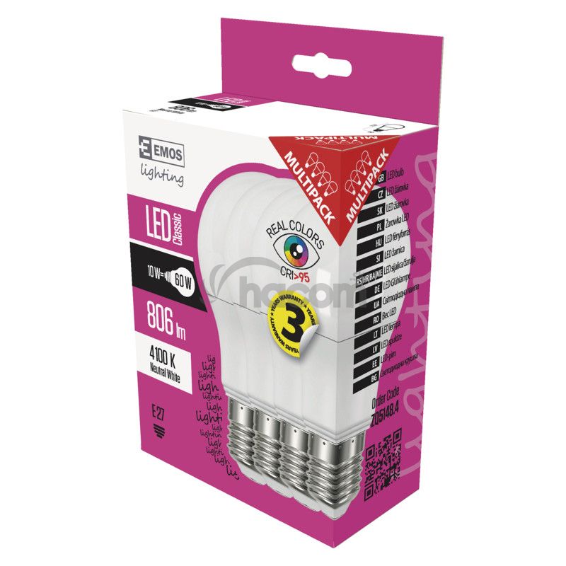 EMOS LED ŽIAROVKA CLASSIC A60 10W (60W) 806lm E27 NWRa95 4PC 1525733421
