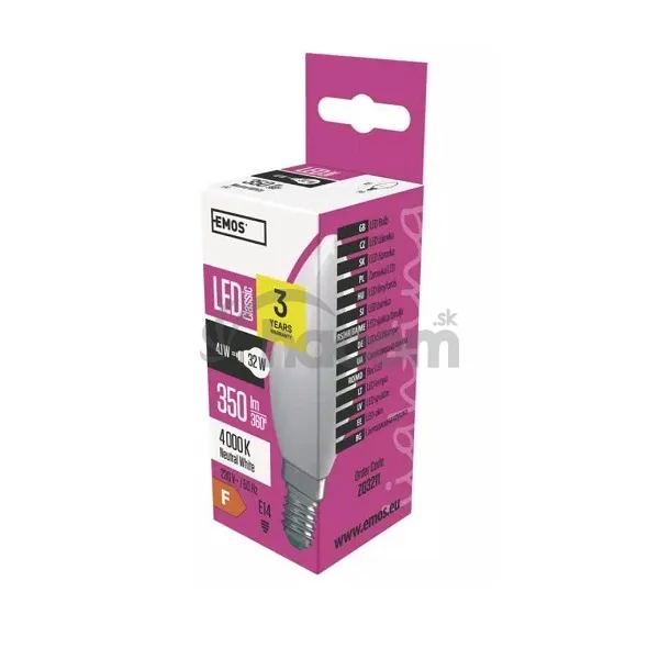 - Emos LED žiarovka Classic Candle 4,1W E14 neutrálna biela ZQ3211