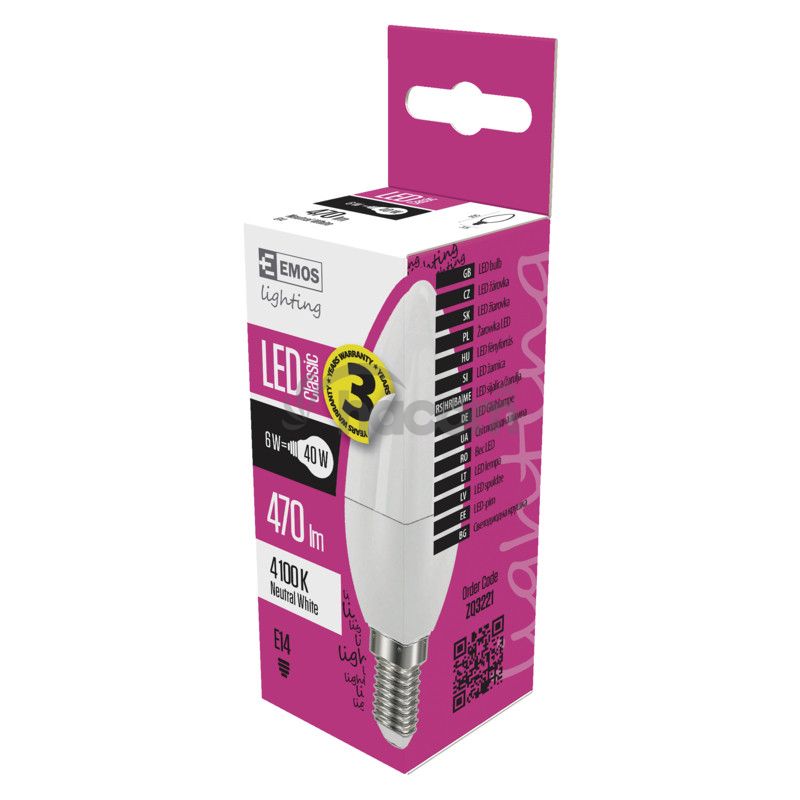 EMOS LED ŽIAROVKA CLASSIC CANDLE 6W (40W) 470lm E14 NW 1525731401