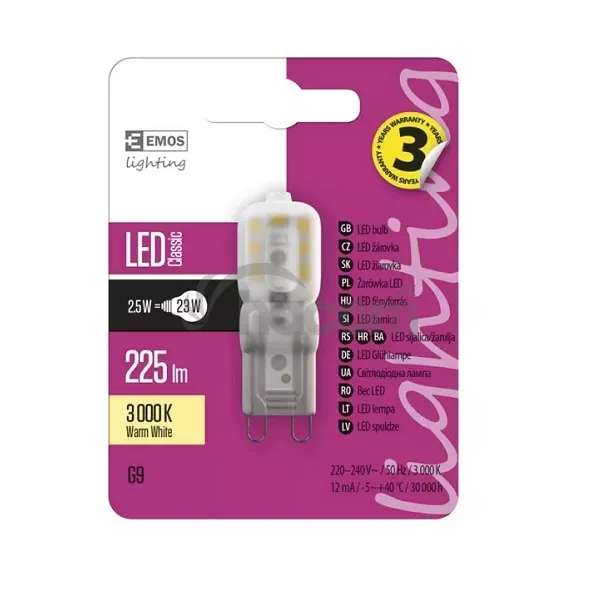 - Emos LED žiarovka Classic JC 2,5W G9 teplá biela ZQ9522