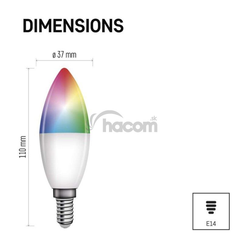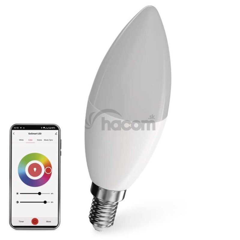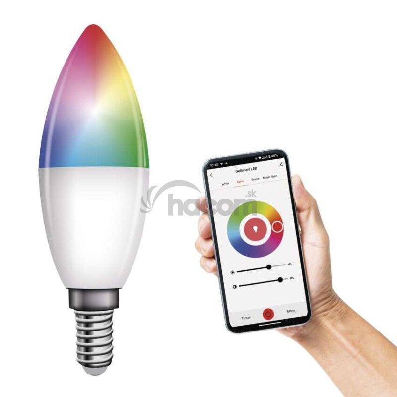- LED žiarovka GoSmart sviečka / E14 / 4,8 W (40 W) / 470 lm / RGB / stmievateľná / WiFi ZQW322R