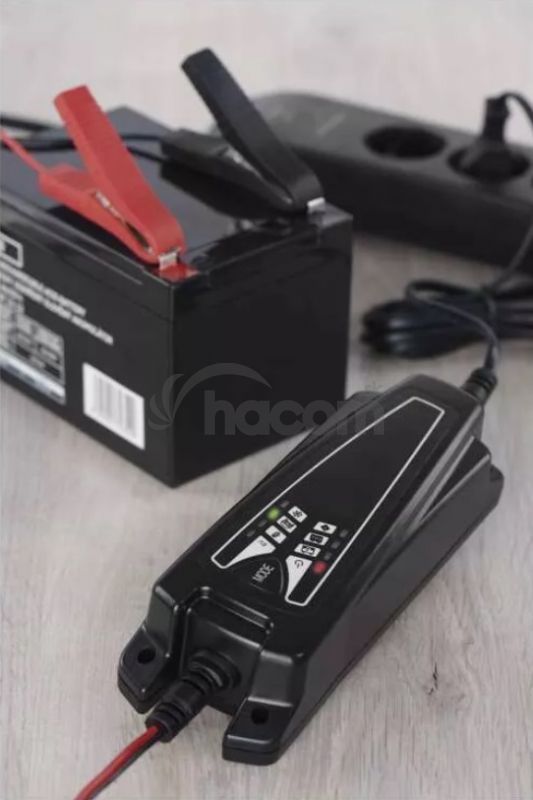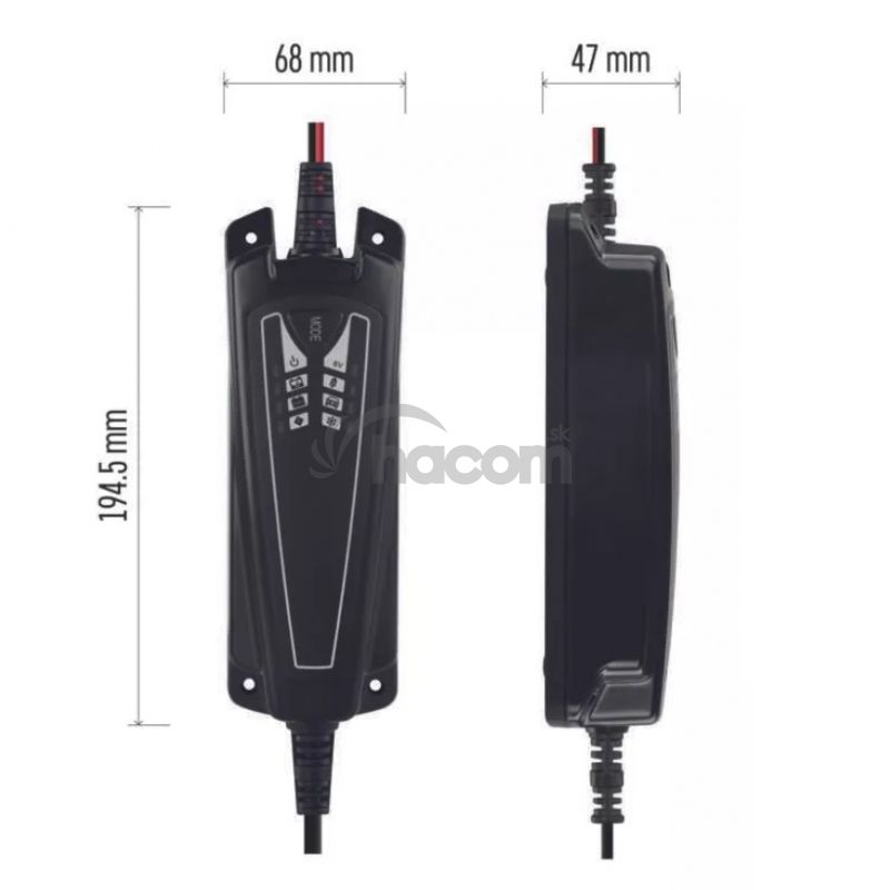 Inteligentná nabíjačka je určená pre automobily, motocykle, záložné akumulátory. Nabíja olovené aku WET (kyselinové), MF (bezúdržbové), záložné akumulátory VRLA, AGM i GEL