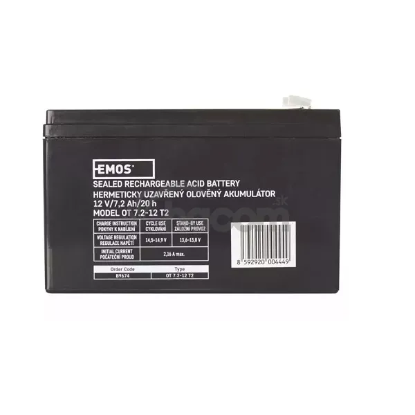 Akumulátor EMOS je vhodný ako náhradná batéria pre záložné zdroje UPS, RBC kity, detské vozidlá a pod. Bezúdržbový, ventilom riadený olovený akumulátor v prevedení AGM umožňuje použitie v ľubovoľnej polohe.Optimálna životnosť v záložných systémoch je 5 rokov.