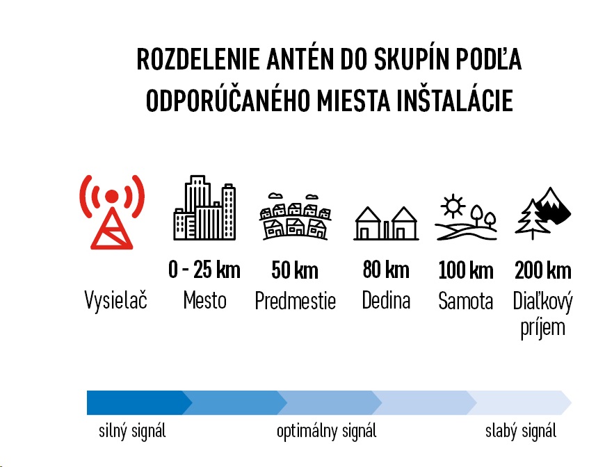 | odporúčaná vzdialenosť inštalácie od vysielača | 0–200 km (diaľkový príjem) |