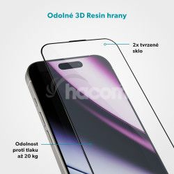 2x 3D ochranné sklo, pre Apple iPhone 16 Pro, tvrdosť 9H, hrúbka 0,33 mm, antimikrobiálny povrch, súčasťou balenia: inštalačný aplikátor proti prachu.S odolnými 3D Resin hranami