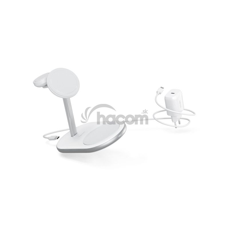 Nabíjací stojanček, bezdrôtový, certifikácia Made for MagSafe, Made for Watch, bezdrôtové nabíjanie iPhone 15W, nabíjacia plocha pre AirPods 5W, rýchlonabíjací modul pre Apple Watch 3W, kábel súčastí, 30W PD adaptér súčastí, farba bielaEpico 3in1 MagSafe Charging Stand ponúka maximálne pohodlie na nabíjanie vašich zariadení Apple. Stojan je vyrobený z odolných prémiových materiálov so štýlovým minimalistickým dizajnom. Vďaka certifikácii Made for MagSafe a Made for Watch zaisťuje najrýchlejšie možné bezdrôtové nabíjanie vášho iPhonu a Apple Watch. Nabite svoj iPhone s výkonom 15 W a Apple Watch 7, 8, 9 alebo Ultra až o 33% rýchlejšie s 3W rýchlonabíjacím modulom. AirPods môžete nabíjať maximálnym výkonom až 5 W. Všetko, čo potrebujete, je súčasťou balenia: kábel USB-C na USB-C a výkonný 30W PD adaptér.