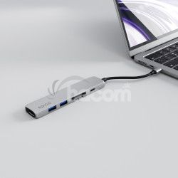 Výkonný húb s elegantným hliníkovým dizajnom6 základných portov: Obsahuje HDMI, USB-C Power Delivery, dva USB-A porty a sloty na SD aj MicroSD karty.