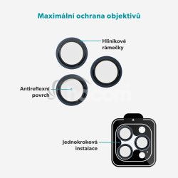 Maximálna ochrana objektívov s hliníkovými rámčekmiDoprajte svojmu iPhonu dokonalú ochranu fotoaparátu vďaka Aluminium Lens Protectors. Táto ochrana objektívov s hliníkovými rámčekmi účinne chráni objektívy pred poškriabaním a nárazmi, takže sa nemusíte obávať opotrebenia z každodenného používania. Špeciálny antireflexný povrch zaisťuje, že vaše fotografie aj videá budú vždy ostré a kvalitné za všetkých podmienok.