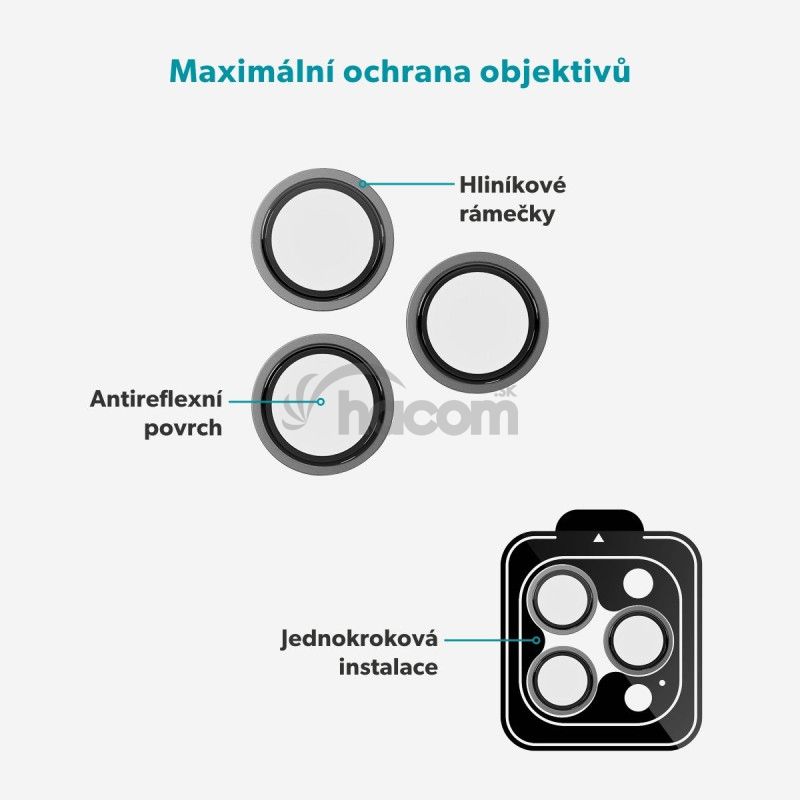 Maximálna ochrana objektívov s hliníkovými rámčekmiDoprajte svojmu iPhonu dokonalú ochranu fotoaparátu vďaka Aluminium Lens Protectors. Táto ochrana objektívov s hliníkovými rámčekmi účinne chráni objektívy pred poškriabaním a nárazmi, takže sa nemusíte obávať opotrebenia z každodenného používania. Špeciálny antireflexný povrch zaisťuje, že vaše fotografie aj videá budú vždy ostré a kvalitné za všetkých podmienok.