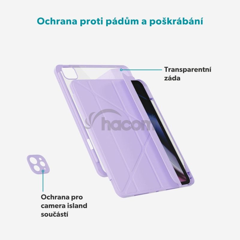 Štýlová ochrana pre každý deňOchranné pouzdro Hero Flip poskytuje iPadu spoľahlivú ochranu a moderný vzhľad. Je vyrobené z odolného TPU, ktoré účinne absorbuje nárazy pri nečakaných pádoch a bráni poškriabaniu pri každodennom používaní. Priehľadné chrbát puzdra zvýrazní originálny dizajn vášho zariadenia, zatiaľ čo presné výrezy zachovávajú pohodlný prístup ku všetkým portom a tlačidlám.