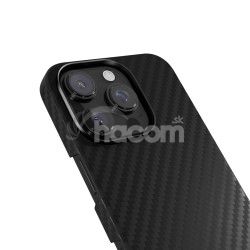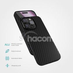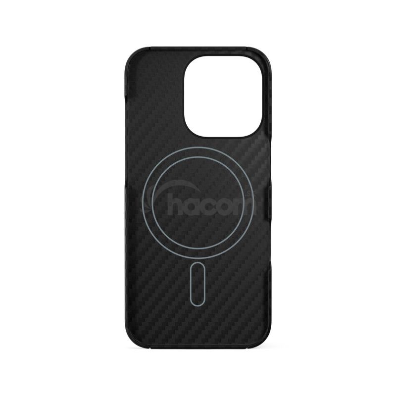 Kryt na telefón, pre Apple iPhone 16 Pro, kompatibilný s MagSafe, materiál aramidové vlákno, hliníkový rámček okolo objektívov, farba čierna.Odolné aramidové vlákno MagSafe kompatibilné: Kompatibilita s MagSafe zaručuje bezdrôtové nabíjanie bez prerušenia.