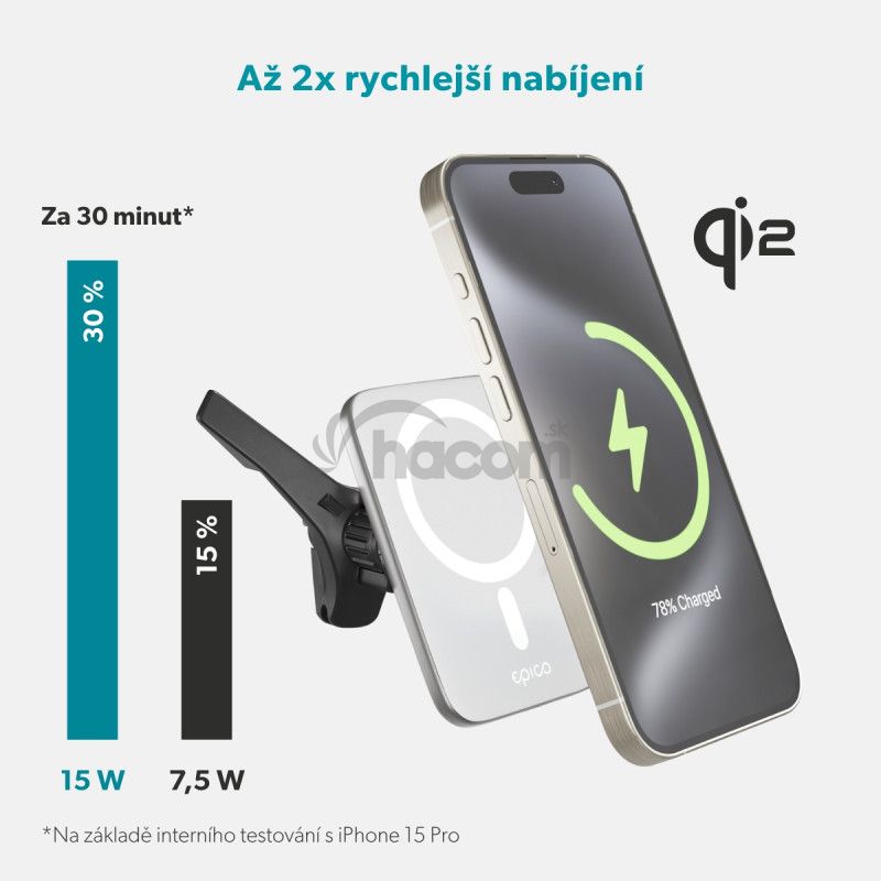 - Epico Qi2 Mag+ ultra tenká autonabíjačka - biela 9915102100020