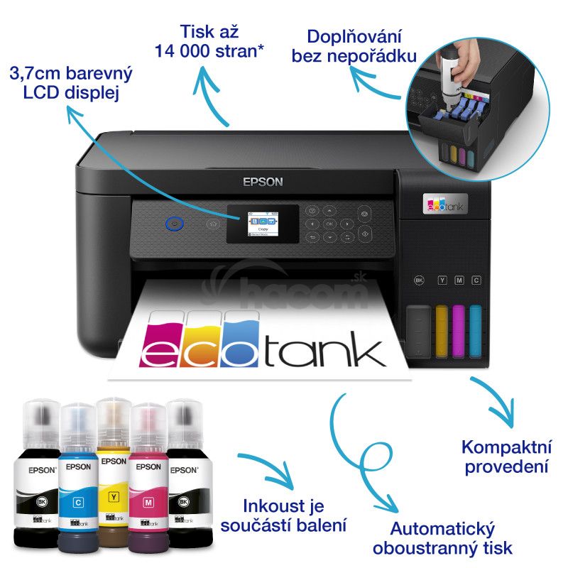 S tlačiarňami EcoTank od spoločnosti Epson ušetríte až 90 % nákladov na tlač. Integrované atramentové zásobníky sa dajú jednoducho naplniť vďaka špeciálne navrhnutým fľašiam s atramentom, ktoré majú vysokú výťažnosť a dodávajú sa spolu s nimi. Táto tlačiareň, v ktorej nie je potrebné meniť žiadne kazety, má flexibilné funkcie pripojenia a ponúka obojstrannú tlač, je ideálnou tlačiarňou pre každého, kto hľadá vysokokvalitnú tlač s neuveriteľne nízkymi nákladmi na stranu.