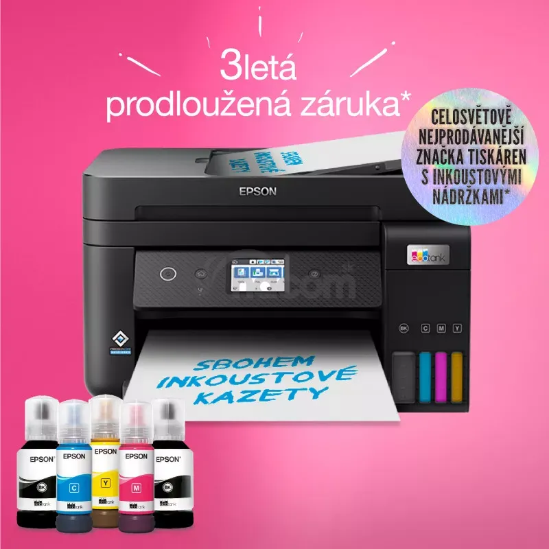 S tlačiarňami EcoTank od spoločnosti Epson ušetríte až 90 % nákladov na tlač¹. Integrované atramentové zásobníky sa dajú jednoducho naplniť vďaka špeciálne navrhnutým fľašiam s atramentom, ktoré majú vysokú výťažnosť a dodávajú sa spolu s nimi. Táto tlačiareň, v ktorej nie je potrebné meniť žiadne kazety a ktorá ponúka flexibilné funkcie pripojenia, fax a automatický podávač dokumentov, je ideálnou tlačiarňou pre každého, kto hľadá vysokokvalitnú tlač s neuveriteľne nízkymi nákladmi na stranu.