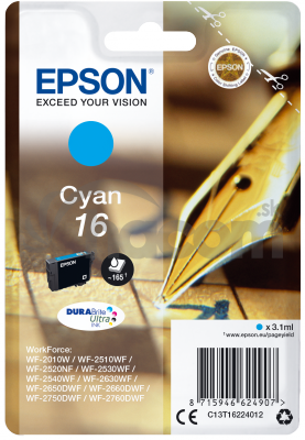 - Epson Singlepack Cyan 16 DURABrite Ultra Ink C13T16224012