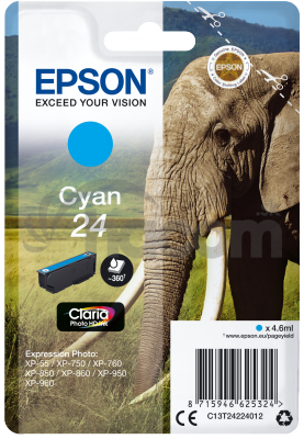 - Epson Singlepack Cyan 24 Claria Photo HD Ink C13T24224012