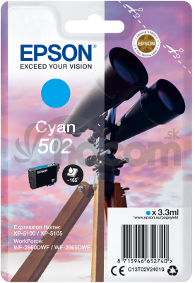 - EPSON singlepack, Cyan 502, Ink, štandard C13T02V24010