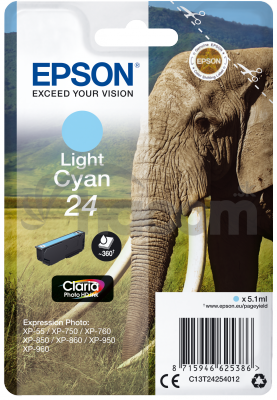 - Epson Singlepack Light Cyan 24 Claria Photo HD Ink C13T24254012