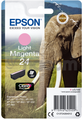 - Epson Singlepack Light Magenta 24 Claira Photo Ink C13T24264012