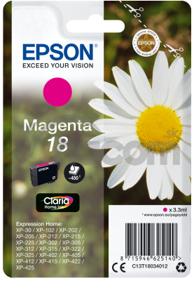 - Epson Singlepack Magenta 18 Claria Home Ink C13T18034012
