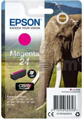 - Epson Singlepack Magenta 24 Claria Photo HD Ink C13T24234012