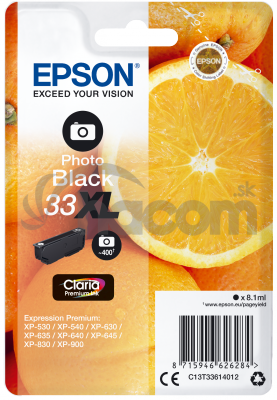 - Epson Singlepack Photo Black 33XL Claria Prem. Ink C13T33614012