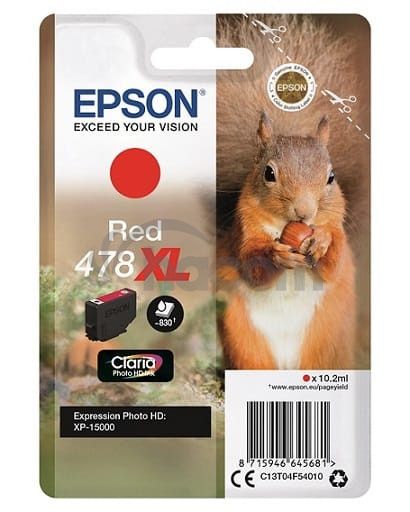- Epson Singlepack Red 478XL Claria Photo HD Ink C13T04F54010