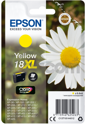 - Epson Singlepack Yellow 18XL Claria Home Ink C13T18144012