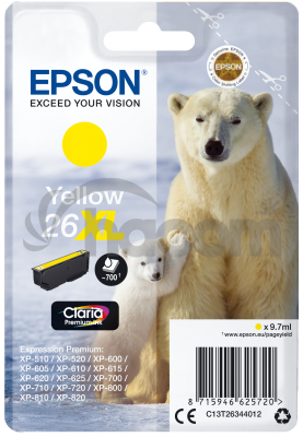 - Epson Singlepack Yellow 26XL Claria Premium Ink C13T26344012