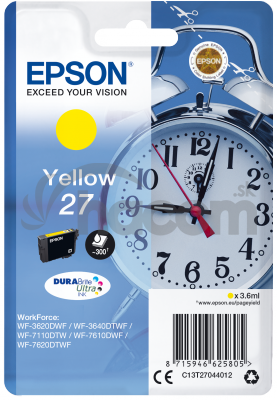 - Epson Singlepack Yellow 27 DURABrite Ultra Ink C13T27044012