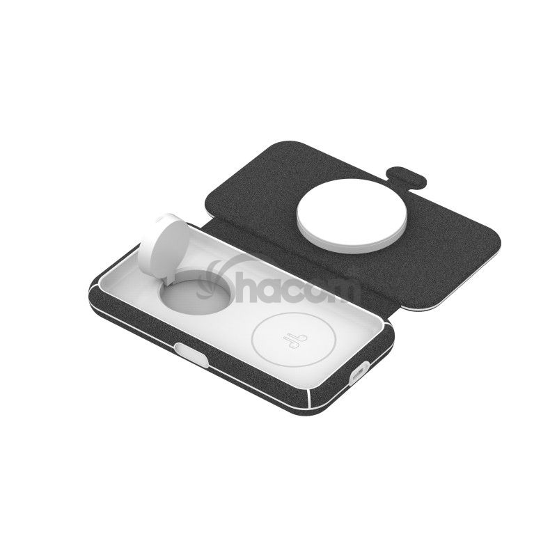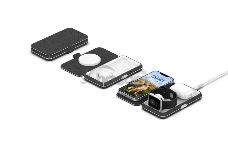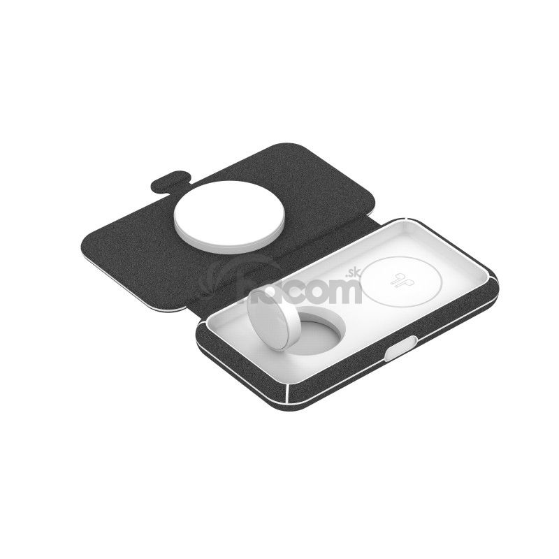Skladacia nabíjačka s nabíjacou plochou pre smartfón, MFW rýchlo-nabíjacím modulom pre Apple Watch a bezdrôtovou nabíjacou plochou pre kompatibilné slúchadlá. Súčasťou balenia je USB-C/USB-C kábel v dĺžke 2 metre. Kompatibilný s MagSafe a Qi, rýchlo-nabíjací MFW certifikovaný modul pre Apple Watch a bezdrôtovú nabíjaciu plochu pre kompatibilné slúchadlá. Vďaka tomu môžete pohodlne dobíjať tri zariadenia súčasne. Farba: čiernaParametre