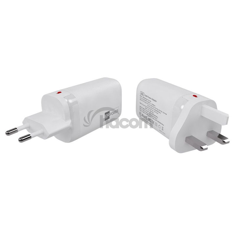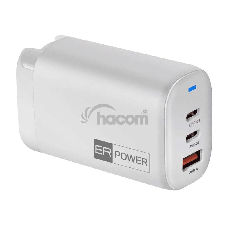 - ER PW 65W GaN sieťový adaptér 2xUSB-C PD/USB-A biely ERPW65G2C1AT-WH