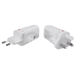 Cestovná GaN nabíjačka s výkonom 65W a porty USB-C a USB-A. Súčasťou balenia sú vymeniteľné vidlice UK a EU. Nabíjačka disponuje dvoma portami USB-C a portom USB-A. Vymeniteľné UK a EU vidlice, ktoré v prípade potreby umiestnite na US vidlicu, ktorá je v nabíjačke integrovaná. Farba: bielaParametre