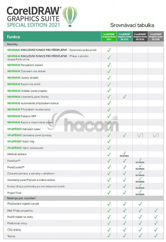 - Či už si pre svoje návrhárske potreby vyberte sadu CorelDRAW Graphics Suite SE, alebo upgrade na sadu CorelDRAW Graphics Suite 2021 so všetkými funkciami, rozhodne nebudete sklamaní.