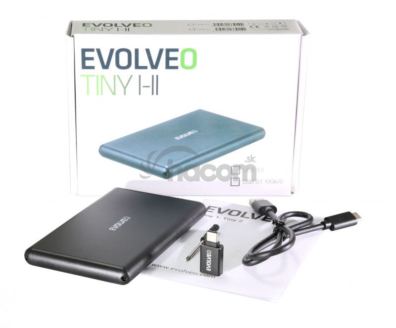 - EVOLVEO 2.5 "Tiny 2, 10Gb / s, externý rámček na HDD, USB A 3.1 + redukcia USB A / USB C TINY2