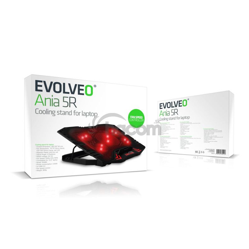 - EVOLVEO Ania 5R, chladiace podstavec pre notebook, červené podsvietenie ANIA5R