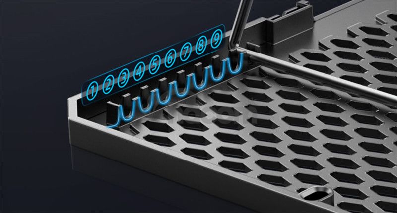 Chladiaca podložka EVOLVEO Ania 9 RGB disponuje možnosťou polohovania. Je tu celkom 9 rôznych polôh, a to až do výšky 210 mm. Každý používateľ si tak nájde optimálnu polohu.
