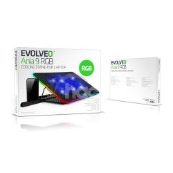 Chladiacu podložku EVOLVEO Ania 9 RGB s RGB podsvietením využijete pre notebooky o veľkosti 10-17". Bezpochyby oceníte možnosti nastavenia polohy a reguláciu otáčok ventilátora. Pomocou tlačidiel u displeja je možné prepínať medzi tromi farebnými módmi (modrá, zelená a červená) a štyrmi RGB módmi , ktoré osvetľujú okraj podložky.Podržaním tlačidla pre ovládanie farebných módov podobu dlhšiu 3s dôjde k zapnutiu/vypnutiu LED na okraji podložky.Tlačidlom pre reguláciu otáčok je možné navoliť jednu zo 4 rýchlostí ventilátorov a tieto potom úplne vypnúť.