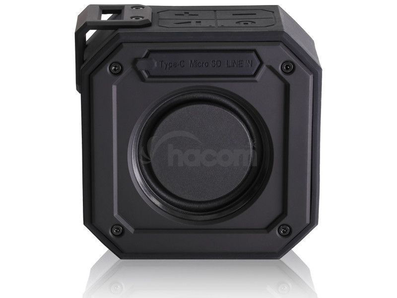 Pláva a hrá!Vodotesný kompaktný bezdrôtový reproduktor s výdržou batérie 24h. Môžete ho vziať na párty k bazénu, na splavovanie rieky na kanoe, alebo do prírody. Voda mu nevadí. Pláva a ešte k tomu hrá! Jeho pogumovaný povrch navyše zvyšuje odolnosť proti pádu. Pútko a priložený povrázok umožňuje rýchle uchytenie reproduktora k batohu, či taške, ktorý vďaka tomuto nikde nezabudnite.